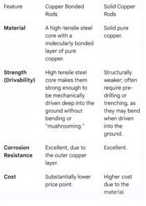 Why Copper Bonded Rods are used instead of Solid Copper Rods Copper bonded rods are generally preferred over solid copper rods for earthing because they offer a combination of excellent conductivity, high mechanical strength, and cost-effectiveness: